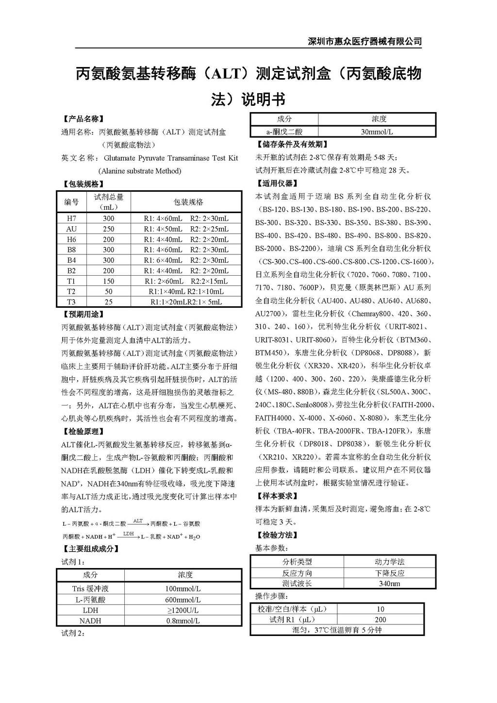 丙氨酸氨基轉移酶(ALT)測定試劑盒(丙氨酸底物法)