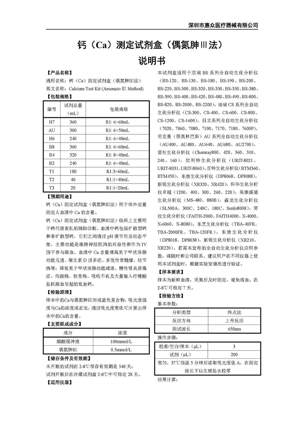 • 鈣(Ca)測(cè)定試劑盒(偶氮胂Ⅲ法)