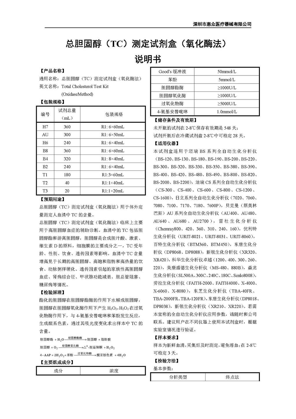 • 總膽固醇(TC)測定試劑盒(氧化酶法)