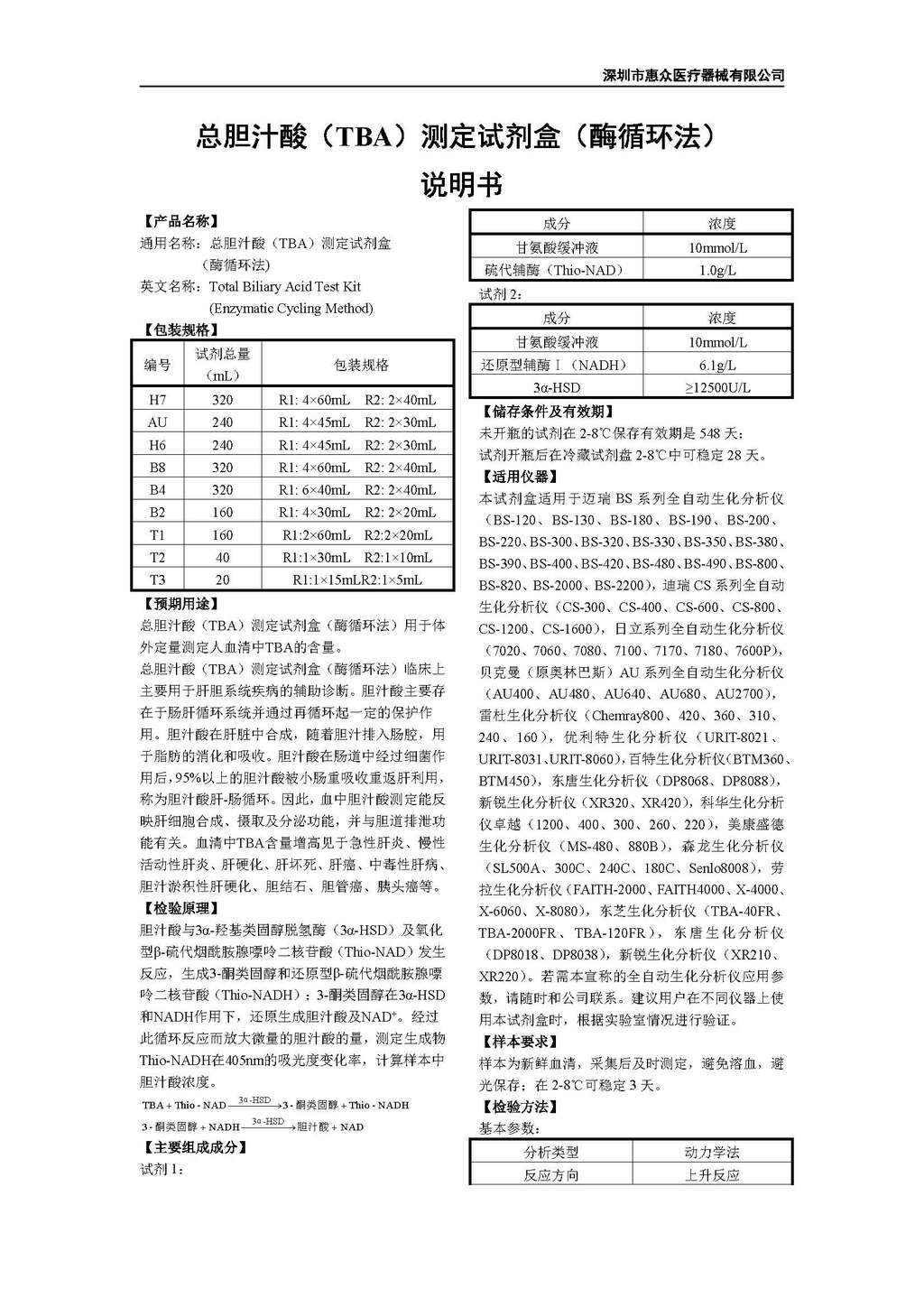 • 總膽汁酸(TBA)測(cè)定試劑盒(酶循環(huán)法)