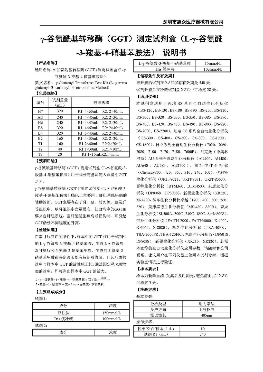 • γ-谷氨酸轉移酶(GGT)測定試劑盒(底物法)