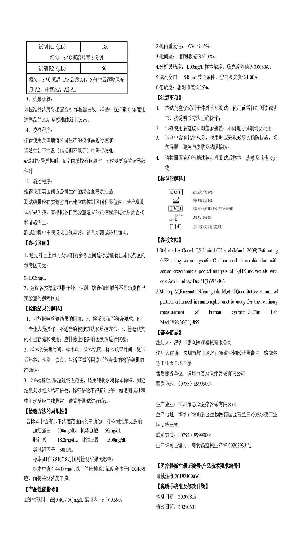 • 胱抑素C(Cys C)測定試劑盒(膠乳免疫比濁法)