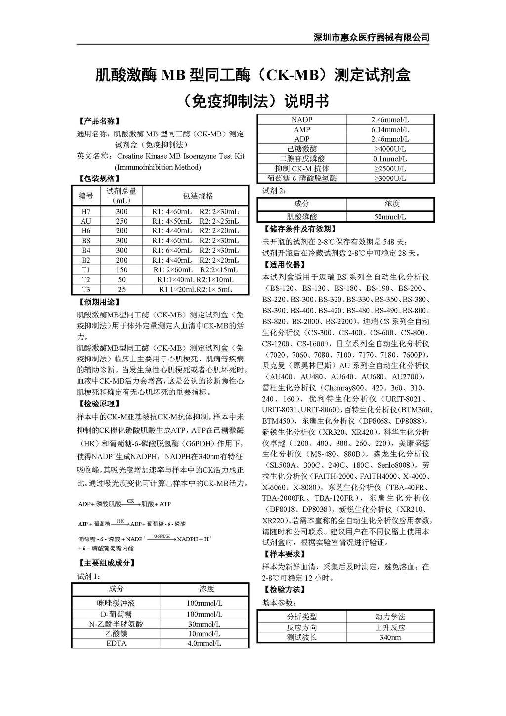 • 肌酸激酶MB型同工酶(CK-MB)測定試劑盒(免疫抑制法)