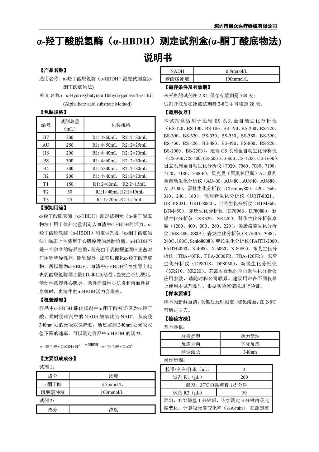 • α-羥丁酸脫氫酶(α-HBDH)測定試劑盒(α-酮丁酸底物法)