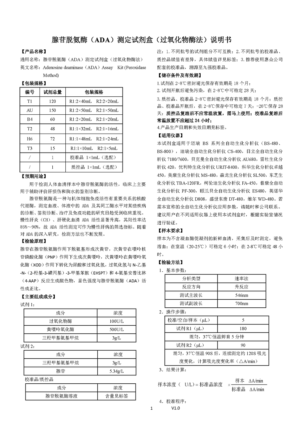 • 腺苷脫氨酶(ADA)測定試劑盒(過氧化物酶法)